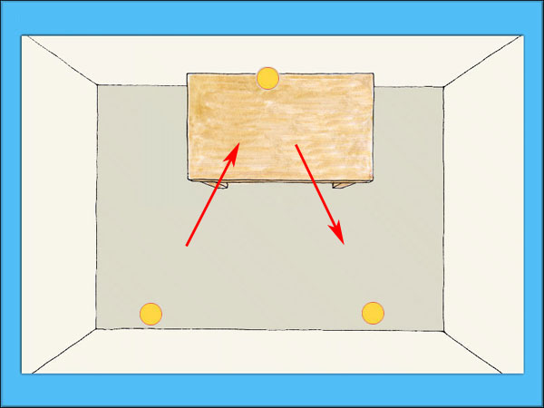 För att förstå hur ljuset studsar i en vanlig spegel kan man tänka sig att man kastar en boll snett mot en vägg. Bollen studsar då tillbaka från väggen, fast åt andra hållet.